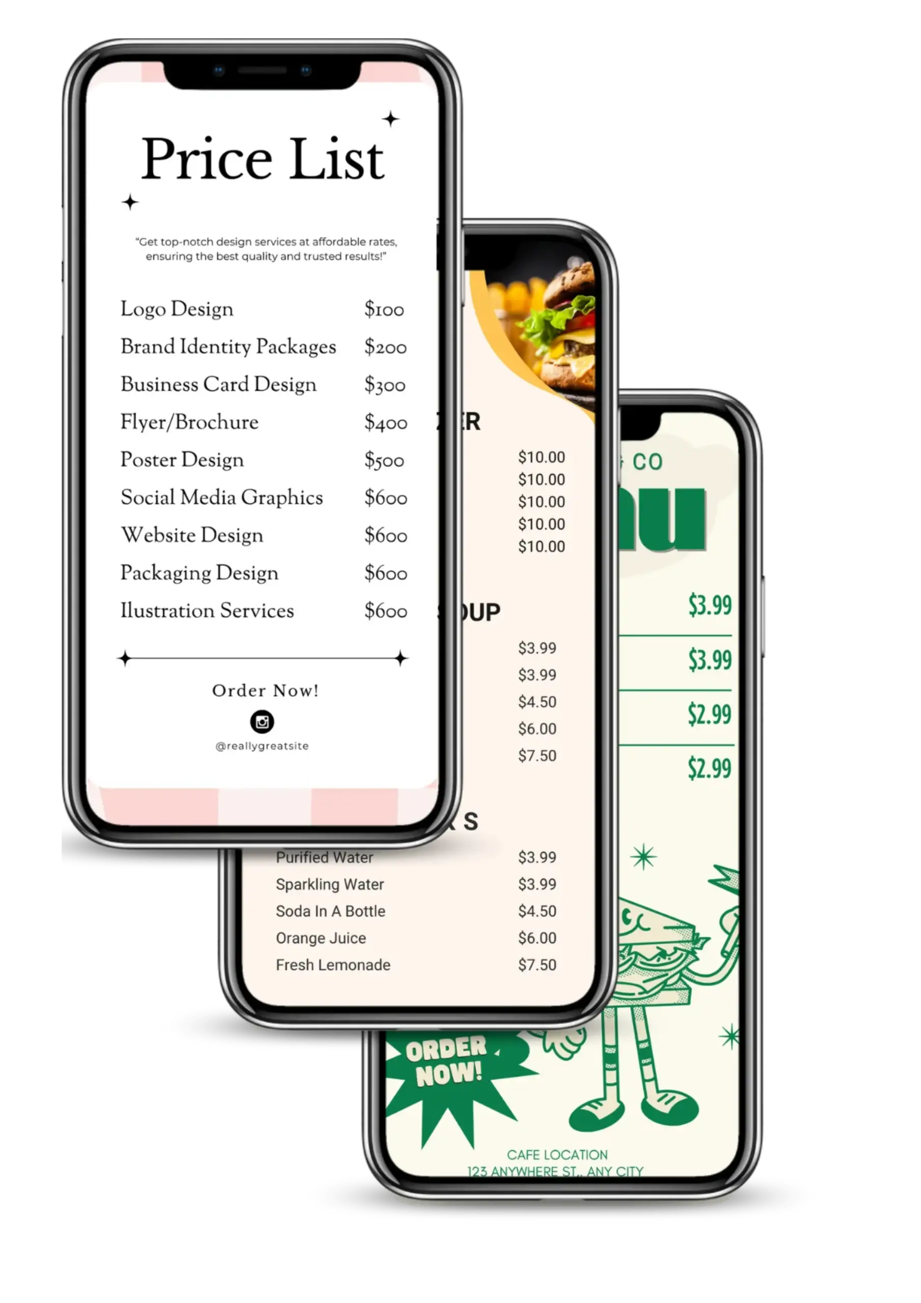 • Custom σχεδιασμός μενού προσαρμοσμένος στην αισθητική σας